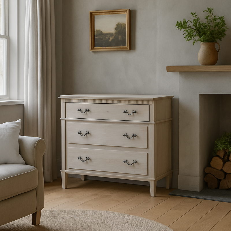 Soft Off White Wooden Three Drawer Chest - CLEARANCE