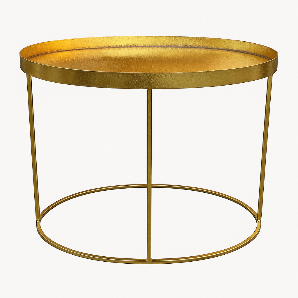 This small oval gilt metal table combines modern elegance with compact versatility. Featuring a smooth gold-finished top and a minimalist metal frame, it serves perfectly as a side table, accent table, or nightstand. Ideal for small spaces, its reflective surface adds a luxe touch to any modern, glam, or art deco décor.