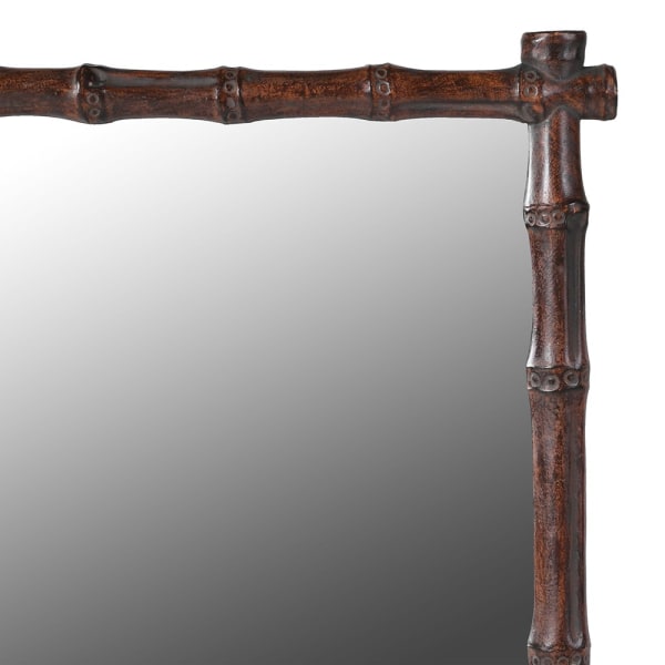 Small resin framed mirror in a faux bamboo style in a bronze resin.  Perfect bathroom, small cloakroom or bedroom mirror.  Would fit well into any interior, country house or period town home.  Compact but interesting with the dark bamboo styled frame.  Over a sink, small dressing table or in an alcove this mirror packs a punch for its size and will enliven any area