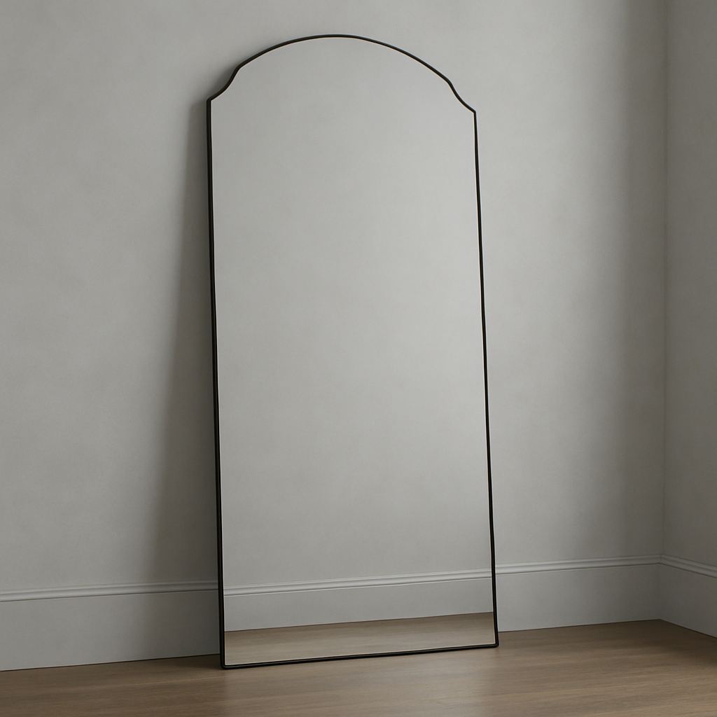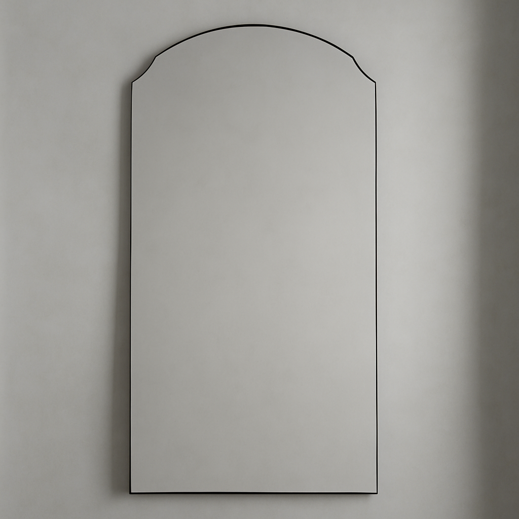 A simple and highly effective wall mirror minimalist in design yet maximum in impact. With an arched top and a slim black frame that is 2cm in depth, the striking thing about this wall mirror is the sheer volume of glass that reflects and bounces light back into your room. The subtle curves add a touch of sophistication.