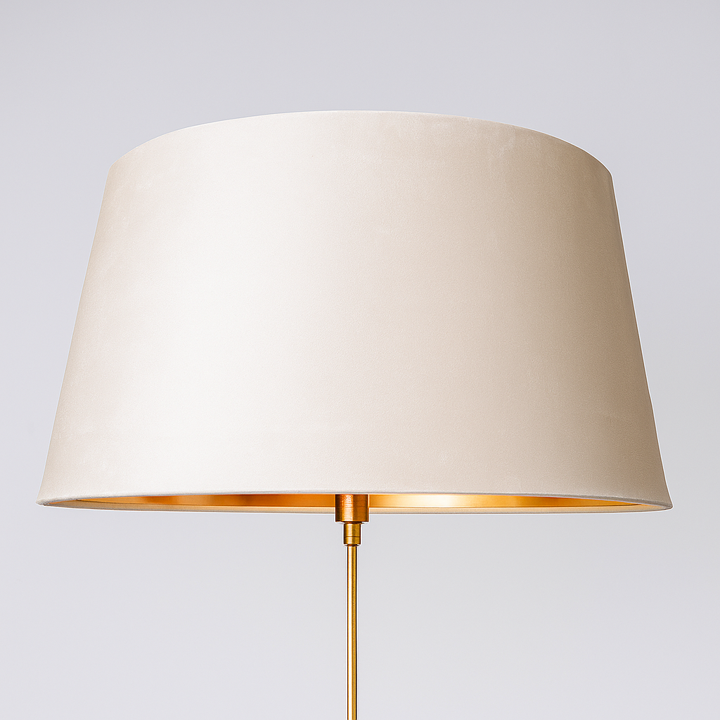 This oversized cream velvet lampshade with a luxurious gold inner adds timeless elegance and a warm ambient glow to any interior. Ideal for modern, classic, or luxe decor styles, it's the perfect upgrade for floor or table lamps.