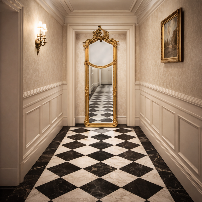 Elegant Giltwood Tall Mirror with Garland Divide